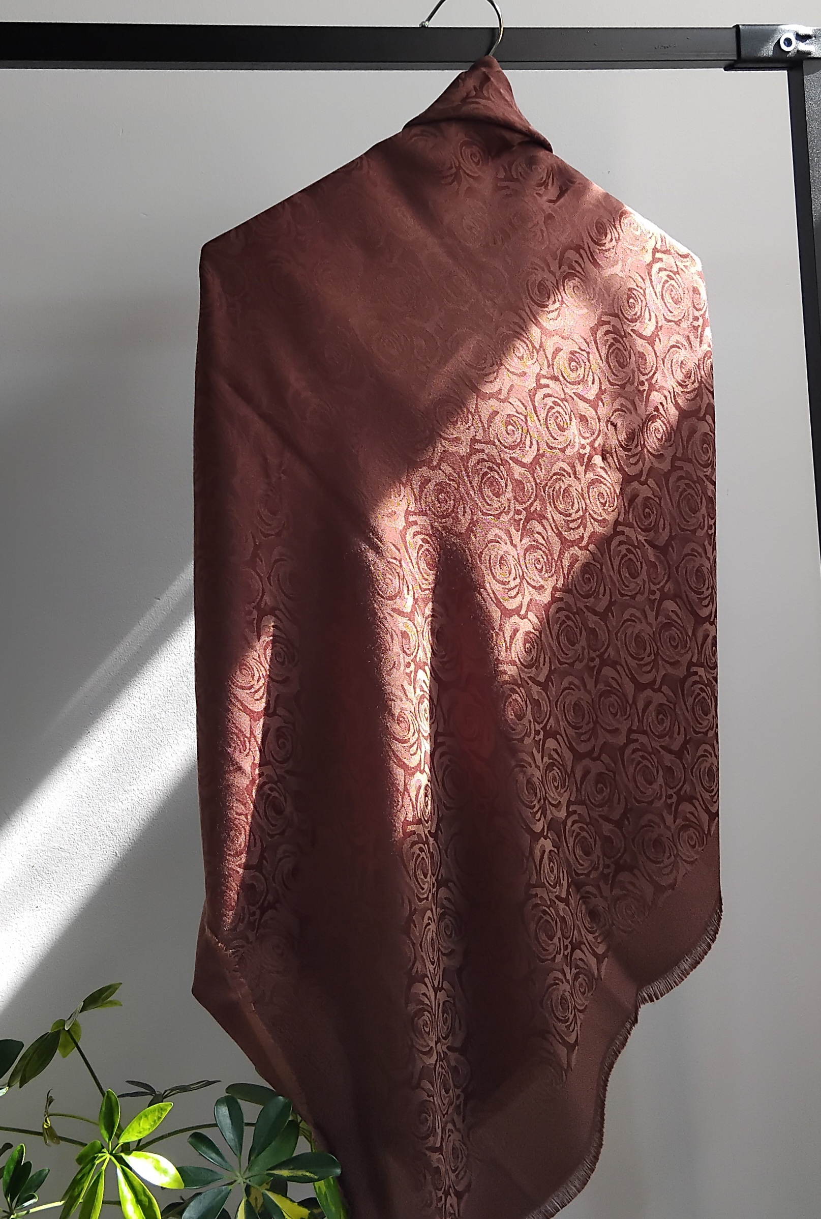 روسری نخ ژاکارد قهوه ای سوخته